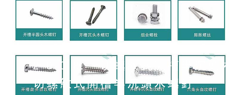 2.開槽沉頭木螺釘3.開槽半沉頭木螺釘4.六角頭木螺釘5.十字槽圓頭木螺釘6.十字槽沉頭木螺釘7.十字槽半沉頭木螺釘2.6 自攻螺釘1.十字槽沉頭自攻螺釘2.自攻螺釘(金屬薄板用螺釘)3.六角頭自攻螺釘4.開槽盤頭自攻螺釘5.開槽沉頭自攻