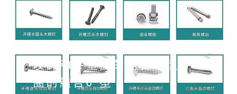 沉頭內六角螺釘(平杯)、半圓頭內六角螺釘(圓杯)、十字槽盤頭機螺釘、十字槽沉頭機螺釘、十字槽大扁頭機螺釘、十字槽盤頭自攻釘、十字槽沉頭自攻釘、十字槽大扁頭自攻釘、全牙絲桿(牙條)、六角螺母、法蘭 地腳螺栓具體有以下規格:六角頭螺栓GB/T5782-2000、十字槽盤頭自攻螺釘GB845-85、內六角螺釘GB/T70、1-2000方頭螺栓GB8-88、標準彈簧墊圈GB93-87十字槽沉頭自攻螺釘GB846-85、六角頭螺栓全螺紋GB/T5783T41-2000、C級