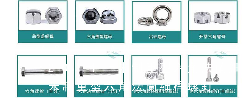 緊定螺釘主要用于固定兩個零件之間的相對位置。特殊用途螺釘例如有吊環螺釘等供吊裝零件用。4. 螺母:帶有內螺紋孔,形狀一般呈顯為扁六角柱形,也有呈扁方柱形或扁圓柱形,配合螺栓、螺柱或機器螺釘,用于緊固連接兩個零件,使之成為一件整體 1、不銹鋼國標螺母的標準尺寸為M1.6-M64。不銹鋼國標螺母包括:六角螺母(GB6170/DIN934)、薄螺母(GB6172/DIN439)、重型螺母(公制、美制)、尼龍鎖緊螺母(DIN985-DIN982厚型)、全金屬鎖緊螺母(DIN980M),蓋型螺母