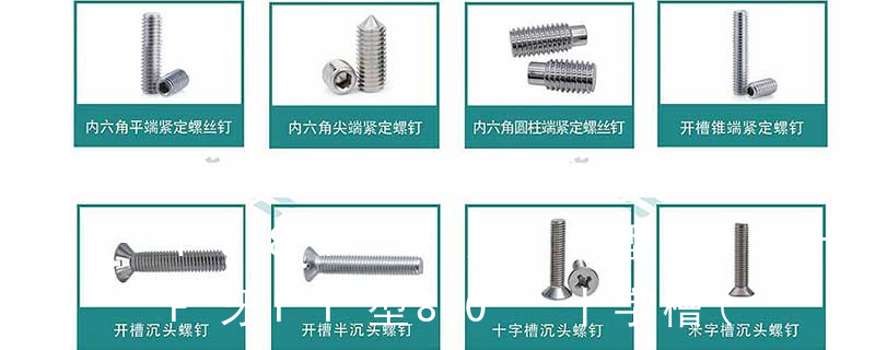 (鐵板牙自攻螺絲) B-2: Plastic Tapping Screw. (塑膠用,自攻螺絲) C: Wooden Screw : 木工螺絲 D: Drywall Screw :水泥墻螺絲 E: Self Drilling Screws鉆尾螺絲(不銹鋼鉆尾螺絲,復(fù)合材料鉆尾螺絲) F:膨脹螺絲,四片膨脹螺絲又