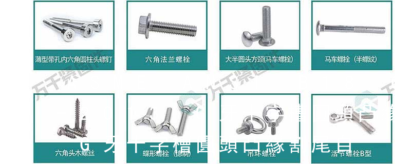 十字槽圓頭機絲牙螺釘 cross recessed round head screw手擰螺絲(拇指螺絲) thumb screw鏈帶螺釘Collated screws標準規范標準就是規范,每個國家和部門都有自己的標準。GB—中國國家標準(國標)ANSI—美國國家標準(美標)DIN—德國國家標準( 主要分類包括普通螺絲、機螺絲、自攻螺絲和膨脹螺絲三種。有頭螺釘Cap screw 過去限于全牙的扣件。六角頭螺釘Hex cap screw與大六角螺栓Hex bolt 顧名思義為頭部為六角型的外螺紋扣件,設計為使用扳手轉動。依照ASME B18.2.